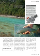 Mündung auch mächtiger. Die langen, tiefen Züge in diesem Revier haben den Ruf der Soča als eines der besten Äschengewässer der Welt begründet. Zeitweise wurde der Fluss seiner Re- putation nicht mehr gerecht, denn massive Kormoraneinflüge dezimier- ten die Bestände. Durch konsequente Vergrämung und aufwändige Stütz- maßnahmen in den professionellen Zuchtbetrieben des Tolminer Vereins konnte man die einzigartige Soča- Äsche retten. Nach einigen mageren Jahren ist man wieder auf dem Weg zur ursprünglichen Fischdichte. Stre- ckenweise wird als «Touristen-Attrak- tion» auch mit fangfähigen Regenbo-